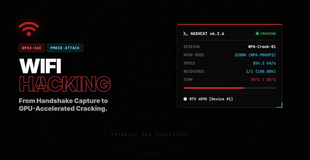To breach these defenses, we must evolve. We no longer just “sniff” packets; we interact with the electromagnetic spectrum using advanced chipsets, exploit protocol weaknesses like the PMKID vulnerability, and leverage the immense parallel processing power of modern GPUs. This treatise is not a basic tutorial; it is a deep-dive technical manual for auditing wireless perimeters in a post-WPA2 world.
